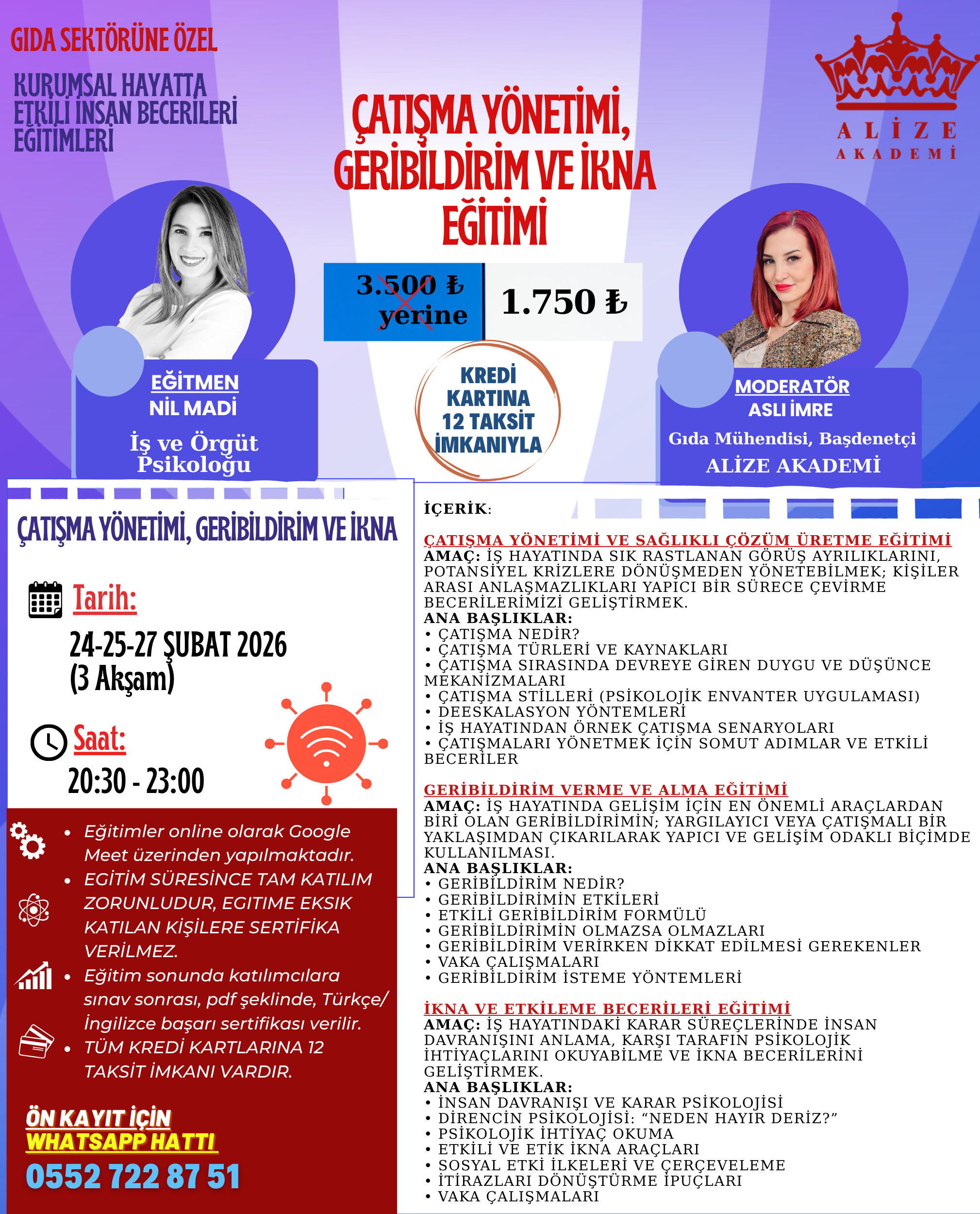 ⚠️Eğitimlere TAM katılım şartı olduğunu önemle belirtmek isteriz. Egitim sırasında dinlediginizi anlayabilmemiz için küçük sorular sorulur… Sadece sertifika almak için lutfen eğitime gelmeyin. Kayıt vermiyoruz, istediğiniz anda soru sorabileceğiniz bir platformda canlı şekilde gerçekleştiriyoruz eğitimlerimizi…